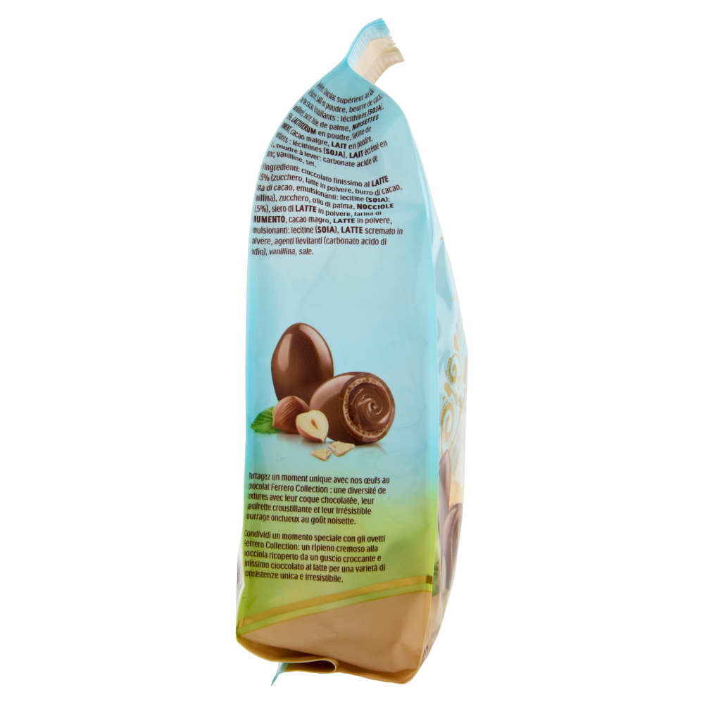 Disponibile anche nella versione: Cacao Condividi un momento speciale con gli ovetti Ferrero Collection: un ripieno cremoso alla nocciola ricoperto da un guscio croccante e finissimo cioccolato al latte per una varietà di consistenze unica e irresistibile.