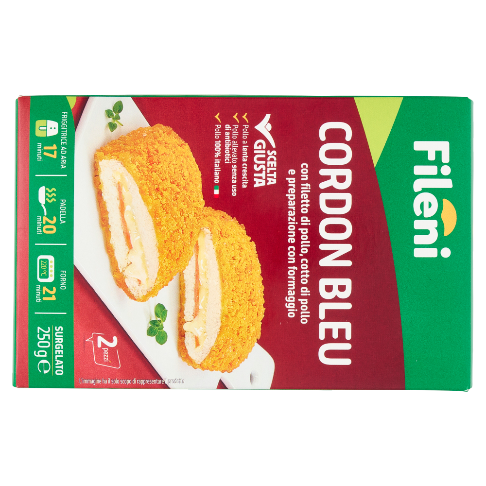 Fileni Cordon Bleu con filetto di pollo, cotto di pollo e preparazione con formaggio Surgelato 250 g