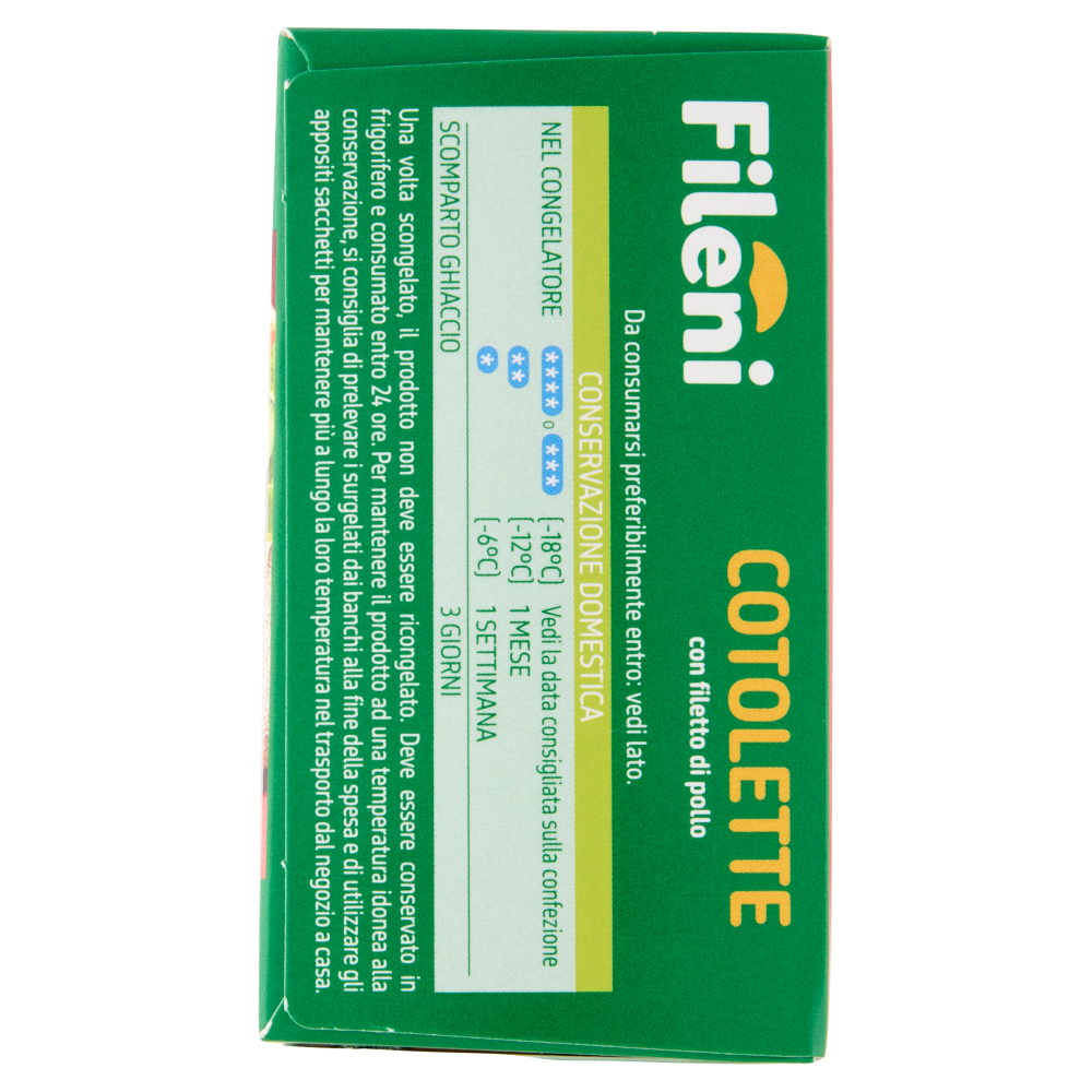 Prodotto surgelato Da consumarsi previa cottura, seguendo le modalità di preparazione sotto riportate: - In friggitrice ad aria: disporre le cotolette ancora surgelate nel cestello. Impostare la friggitrice ad aria a 200 °C e cuocere per 10 minuti. - In padella: mettere le cotolette ancora surgelate in una padella antiaderente con un filo d'olio già caldo e cuocere a fuoco medio per 11 minuti, girando di tanto in tanto. - In forno: preriscaldare il forno ventilato a 220 °C. Disporre le cotolette ancora surgelate su una teglia, con sopra della carta da forno, e cuocere per 16 minuti. Girare a metà cottura.
