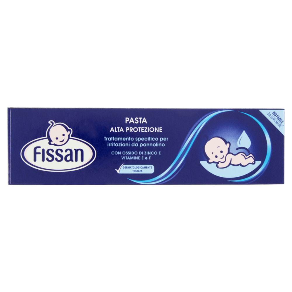 Con l’originale combinazione di Ossido di Zinco e Vitamine, è un trattamento specifico sviluppato per proteggere e lenire le irritazioni e gli arrossamenti cutanei causati da contatto con feci e urine, o sfregamento da pannolino. Applicare un velo di PASTA di FISSAN ALTA PROTEZIONE con un leggero massaggio e in modo uniforme, specialmente tra le pieghe della pelle. Indicata anche in caso di irritazione della pelle adulta. Il non totale assorbimento dello strato bianco è indice della sua effcacia protettiva.