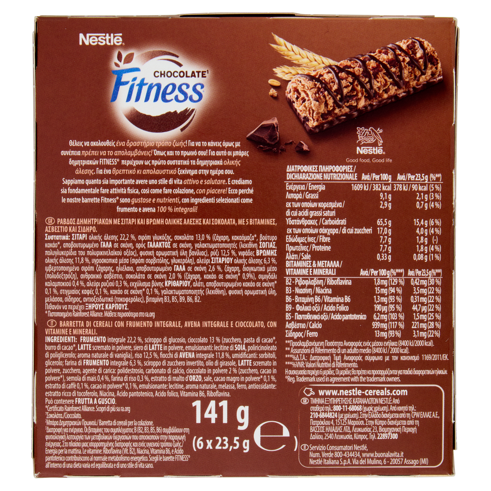 Sappiamo quanto sia importante avere uno stile di vita attivo e salutare. E crediamo sia fondamentale fare attività fisica, così come fare colazione, con piacere! Ecco perché le nostre barrette Fitness sono gustose e nutrienti, con ingredienti selezionati come frumento e avena 100% integrali! - Cereali Integrali Ingrediente No. 1 - Solo aromi naturali e nessun colorante - x6 Barrette - 90 Kcal per bar - Energia per la mattina. Le vitamine: Riboflavina (Vit. B2), Niacina, Vitamina B6, e Acido pantotenico contribuiscono al normale metabolismo energetico. Scegli le barrette Fitness all'interno di una dieta varia ed equilibrata e di uno stile di vita sano - Barretta di cereali per la colazione