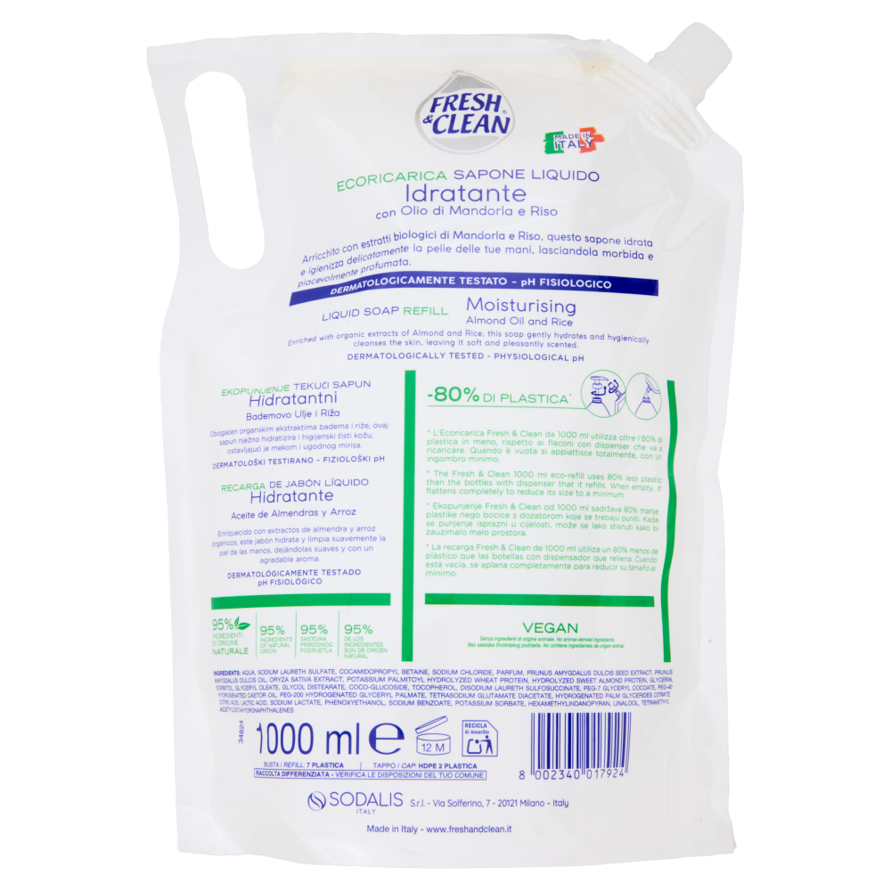 Fresh & Clean Sapone Liquido Idratante con Olio di Mandorla e Riso Ecoricarica 1000 ml