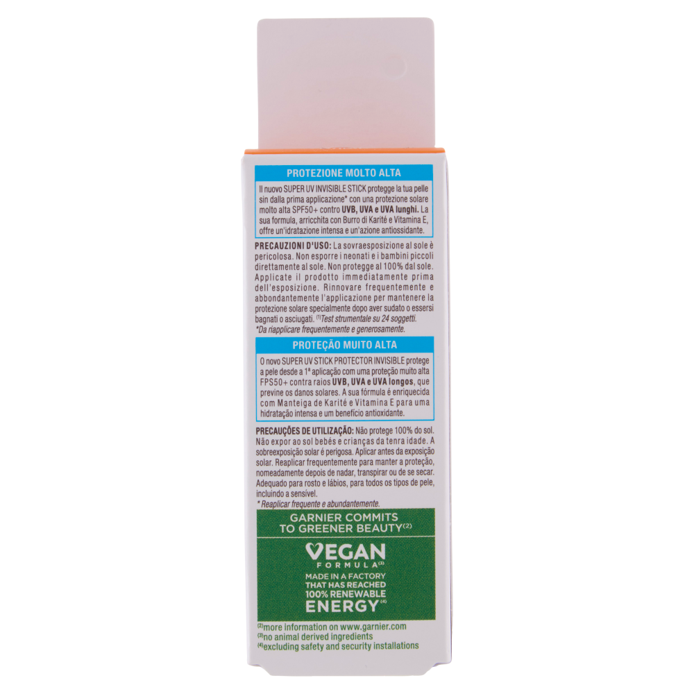 Protezione molto alta Il nuovo Super UV Invisible Stick protegge la tua pelle sin dalla prima applicazione* con una protezione solare molto alta SPF50+ contro UVB, UVA e UVA lunghi. La sua formula, arricchita con Burro di Karité e Vitamina E, offre un'idratazione intensa e un'azione antiossidante. *Da riapplicare frequentemente e generosamente. - Adatto come base make up - Non unge / Non appiccica - Non comedogeno Invisibile sui diversi toni della pelle Dermatologicamente testato Ipoallergenico Senza profumo Vegan formula