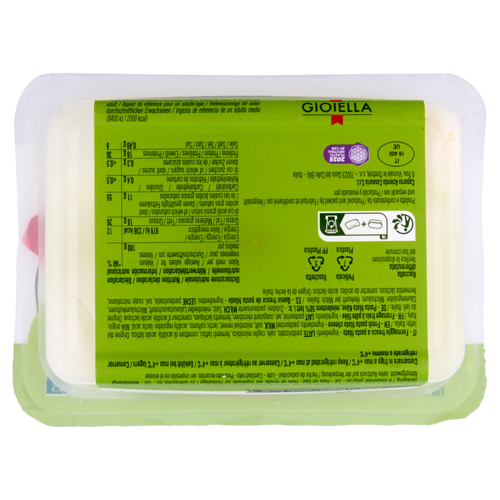 Bollo CE IT 16 400 UE Origine Altro Testo 100% Latte italiano | Origine del latte: Italia Luogo di provenienza Made in Puglia