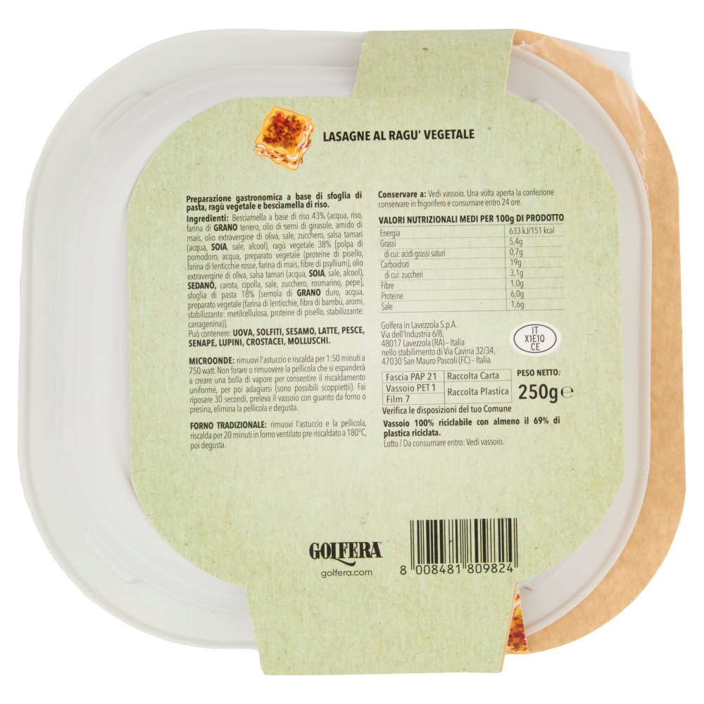 Golfera Ben Fatto Lasagne al Ragù Vegetale 250 g