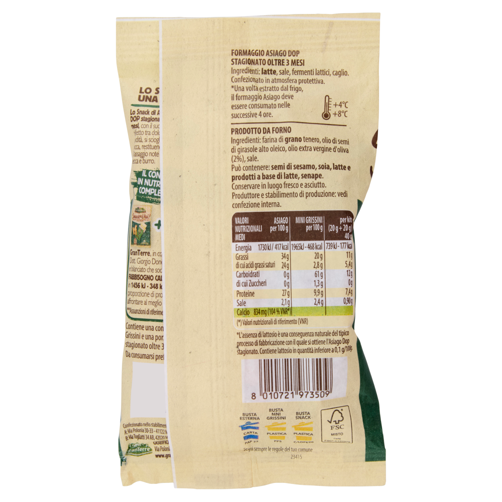 GranTerre Snack & Vai! Asiago DOP Stagionato Oltre 3 Mesi e Mini Grissini 40 g