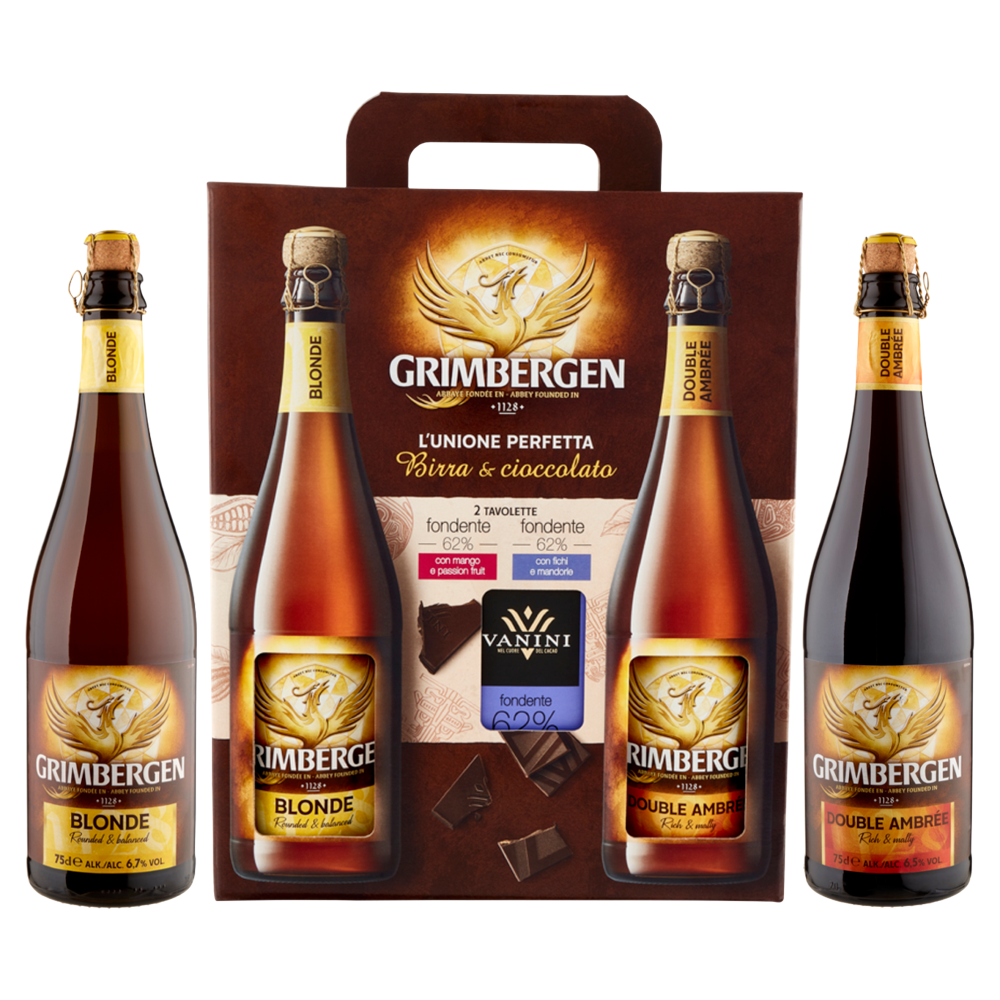 Grimbergen Blonde + Double Ambrée 2 x 75 cl & Vanini fondente 2 x 100 g