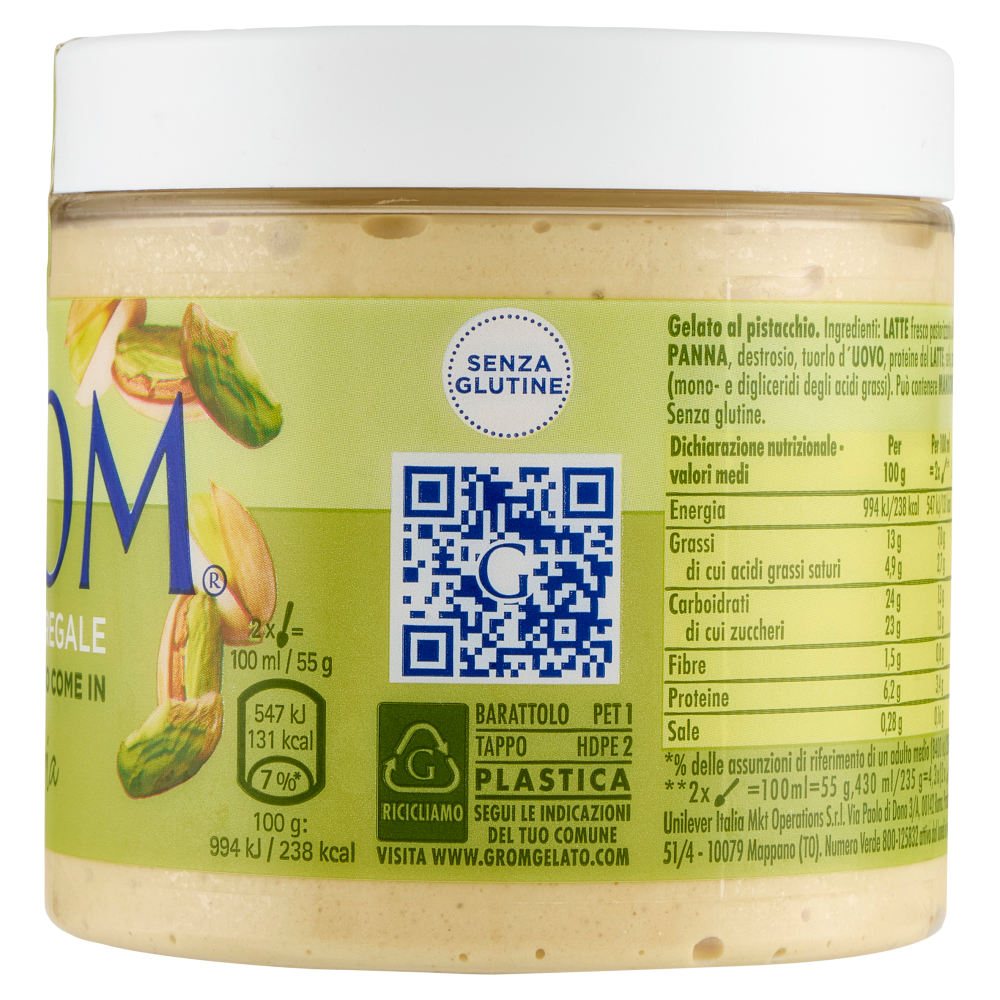 Senza glutine La quintessenza del Nostro Gelato Lasciati avvolgere dalla cremosità del nostro gelato, con latte e panna freschi e di origine 100% italiana. Pura qualità senza glutine, aromi o coloranti. Realizzato con pistacchi del Mediterraneo, dall'aroma intenso e profondo prova la nostra nuova ricetta!