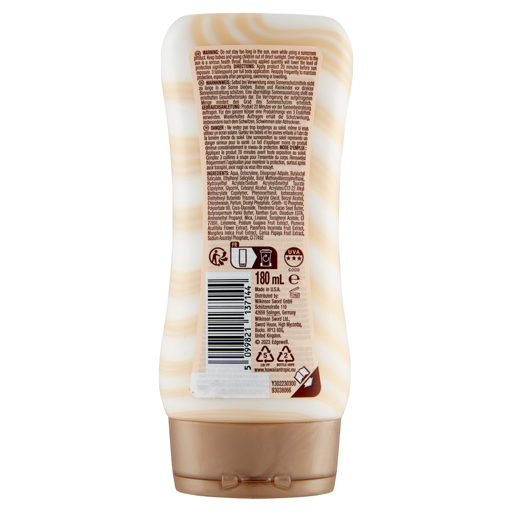 PP 5 HDPE 2 Smaltimento: Per le indicazioni sullo smaltimento dei rifiuti, visita il sito Hawaiian-tropic.it