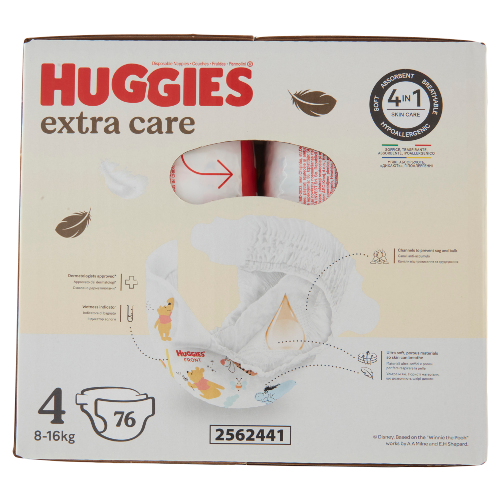 Huggies extra care Pannolini 4 8-16 Kg 76 pz