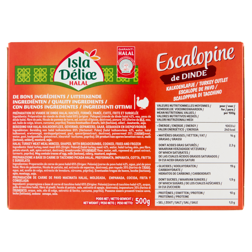 Isla Délice Halal Escalopine de Dinde Surgelés x5 500 g