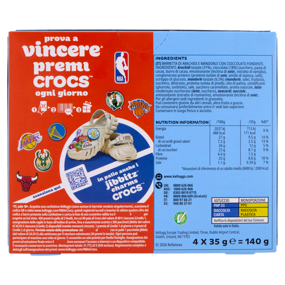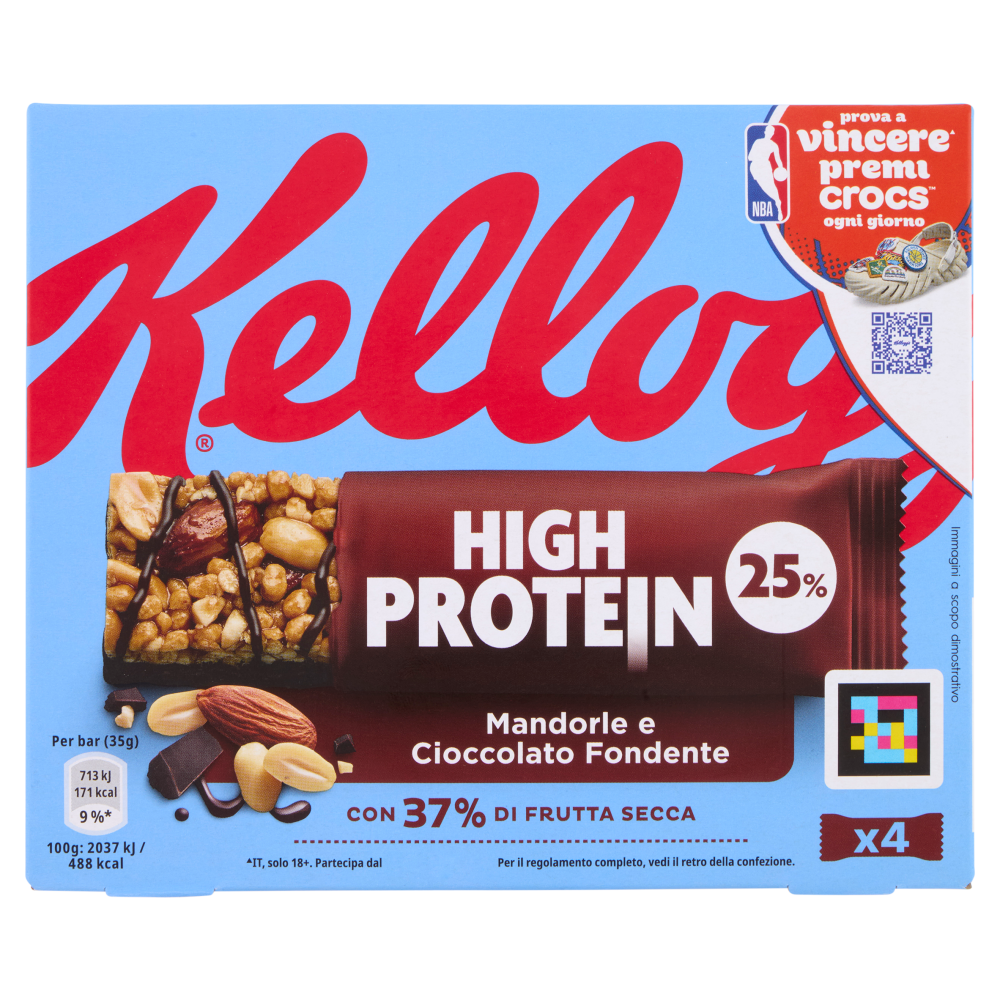 Kellogg's High Protein 25% Mandorle e Cioccolato Fondente 4 x 35 g