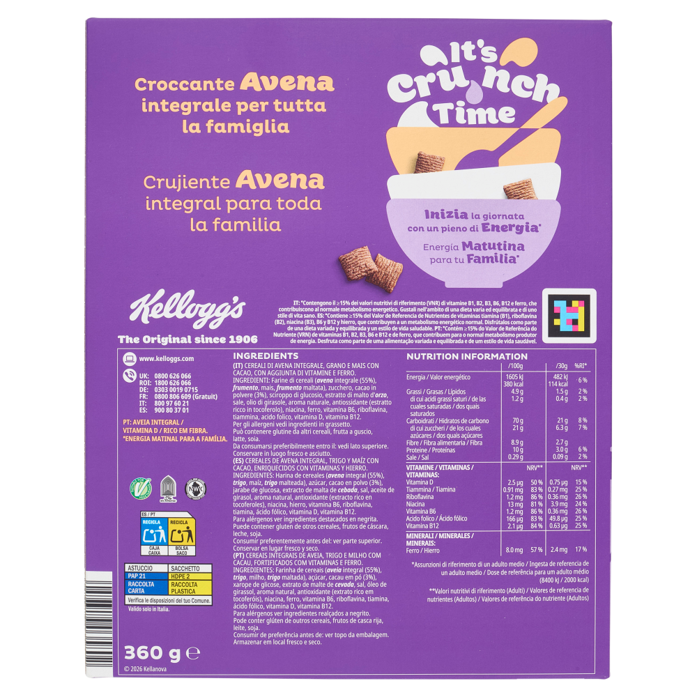 Kellogg's Oaties Avena Croccante al Cacao 360 g