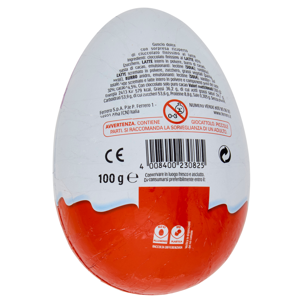 Senza glutineGuscio dolce con sorpresa ricoperto di cioccolato finissimo al latte