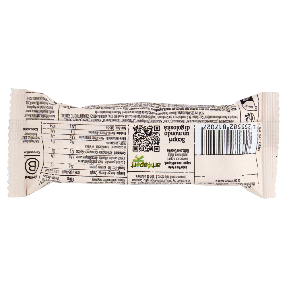 KoRo x Bebe Vio Vegan Barretta di Avena Bio Arachidi e cioccolato 60 g