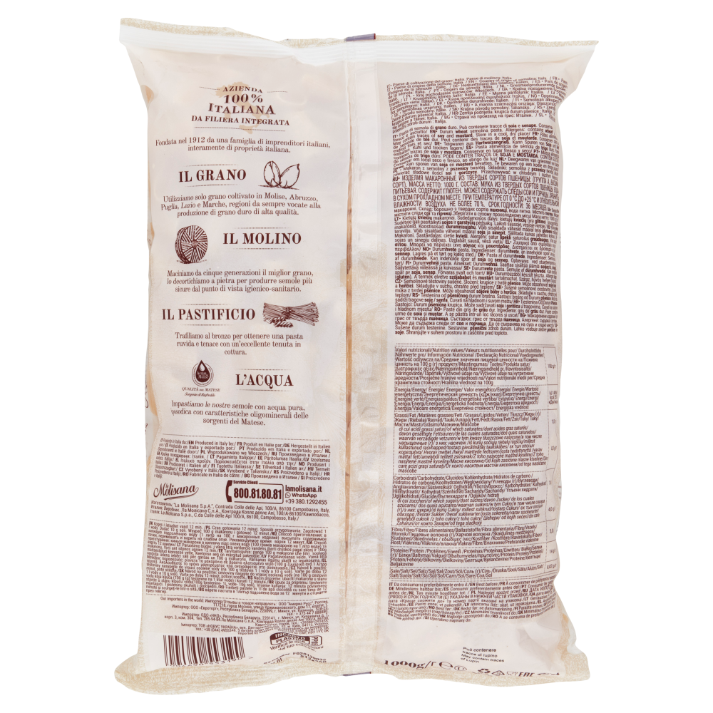 Prodotto in Italia da: "La Molisana S.p.A." Contrada Colle delle Api, 100/A 86100 Campobasso Italy