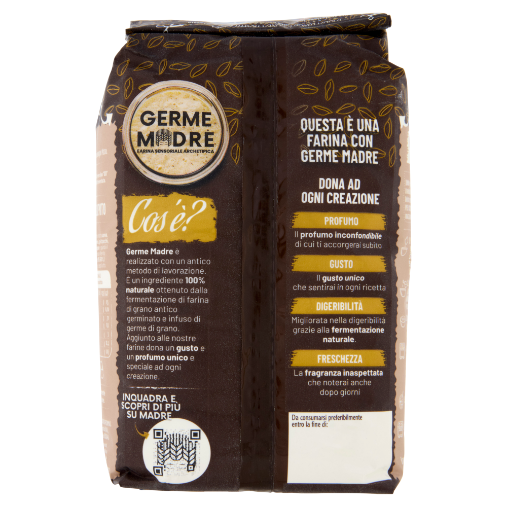 Senti il profumo? C'è Germe Madre Germe Madre farina sensoriale archetipica Cos'è? Germe Madre è realizzato con un antico metodo di lavorazione. È un ingrediente 100% naturale ottenuto dalla fermentazione di farina di grano antico germinato e infuso di germe di grano. Aggiunto alle nostre farine dona un gusto e un profumo unico e speciale ad ogni creazione. Questa è una farina con Germe Madre Dona ad ogni creazione Profumo Il profumo inconfondibile di cui ti accorgerai subito Gusto Il gusto unico che sentirai in ogni ricetta Digeribilità Migliorata nella digeribilità grazie alla fermentazione naturale Freschezza La fragranza inaspettata che noterai anche dopo giorni Non contiene Lievito