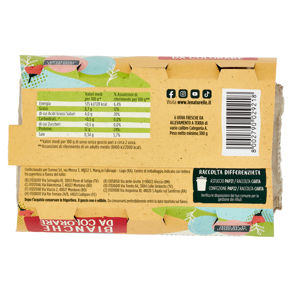 le Naturelle Bianche da Colorare 6 Uova Fresche da Allevamento a Terra 300 g