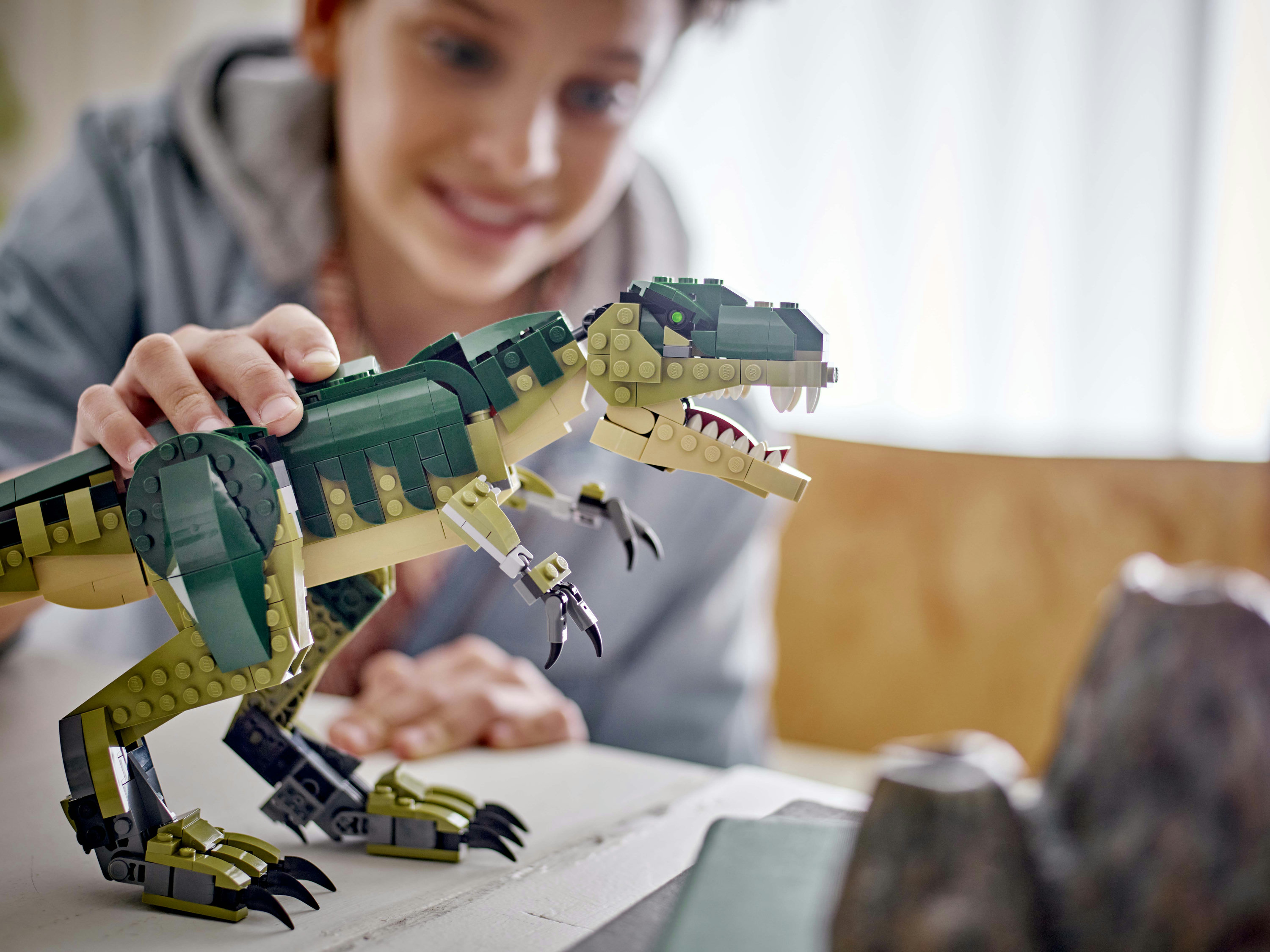 3 dinosauri giocattolo per bambini in 1 set: il playset del dinosauro T. rex LEGO® Creator consente ai bambini e alle bambine dai 9 anni in su di costruire e ricostruire 3 diversi animali giocattolo utilizzando lo stesso set di mattoncini