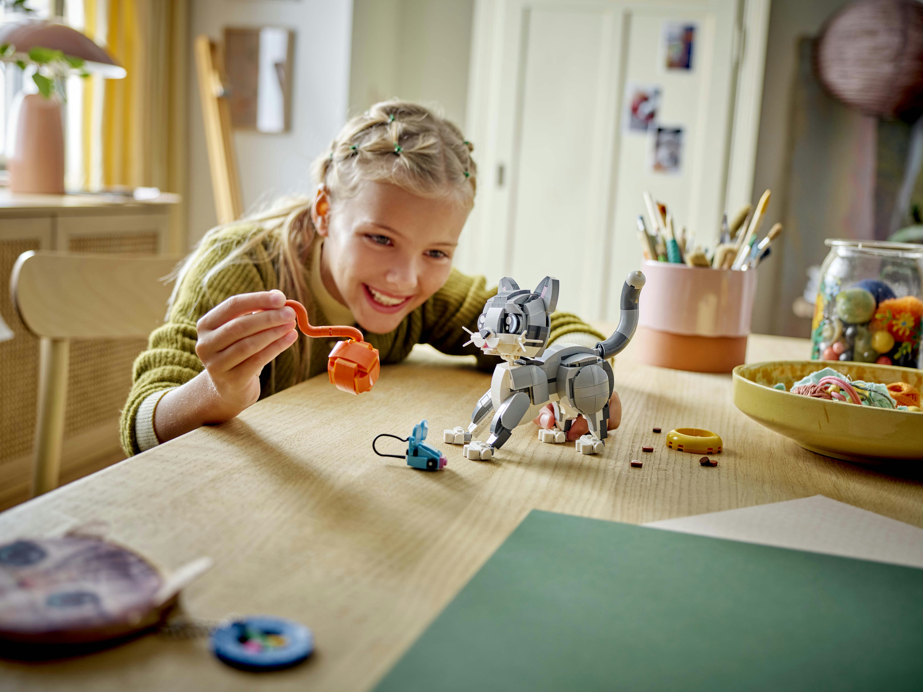 3 opzioni di costruzione di animali domestici per bambini in 1 scatola: il set 3 in 1 del Gatto giocoso LEGO® Creator consente ai bambini dagli 8 anni in su di costruire e ricostruire 3 diversi set di gioco con animali con gli stessi mattoncini