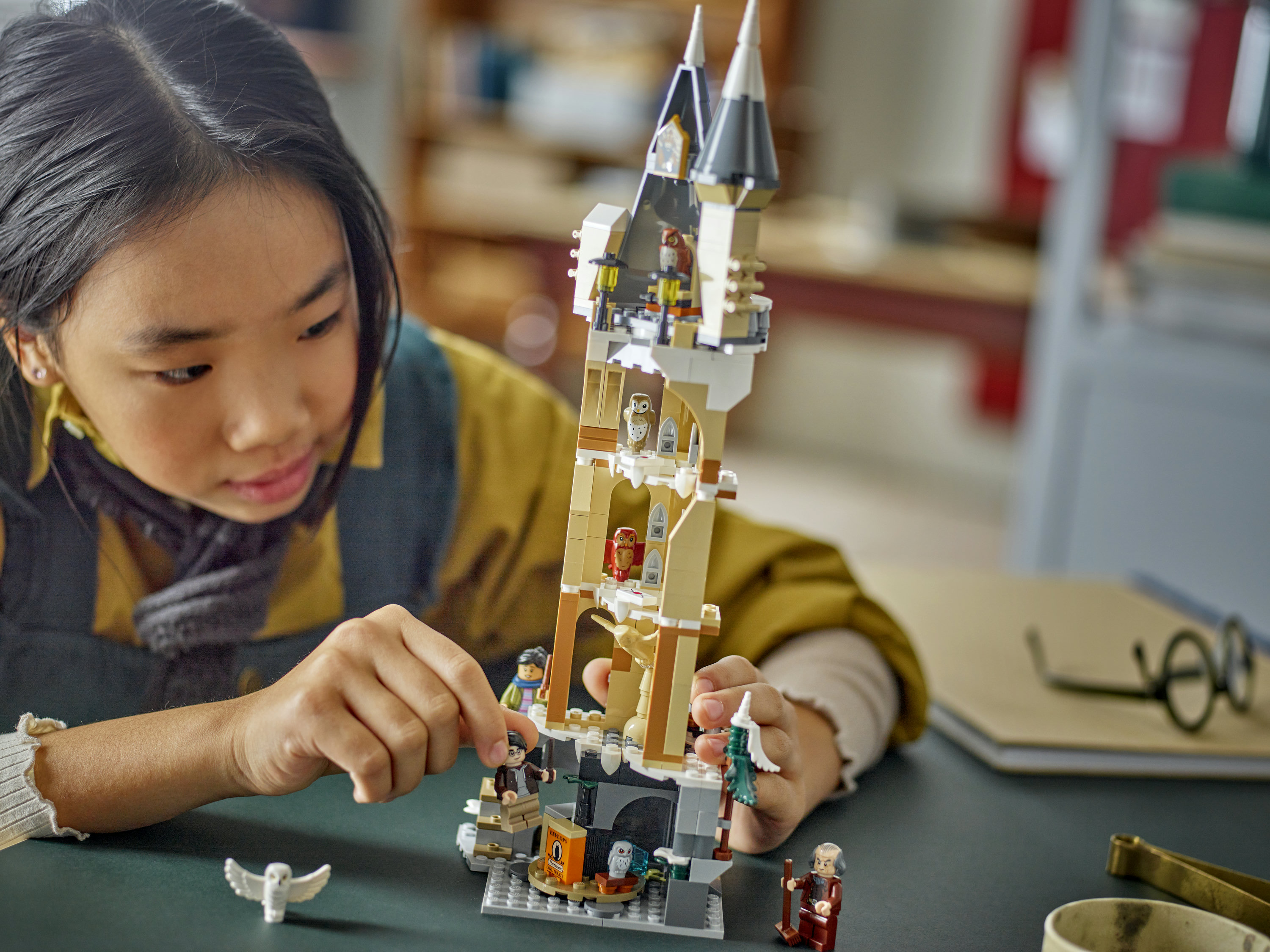 Set di gioco fantasy LEGO® Harry Potter™ per bambini: scopri ore di gioco con gli animali con il primo modello LEGO della Guferia del Castello di Hogwarts™ dove Harry Potter invita Cho Chang™ al Ballo del Ceppo