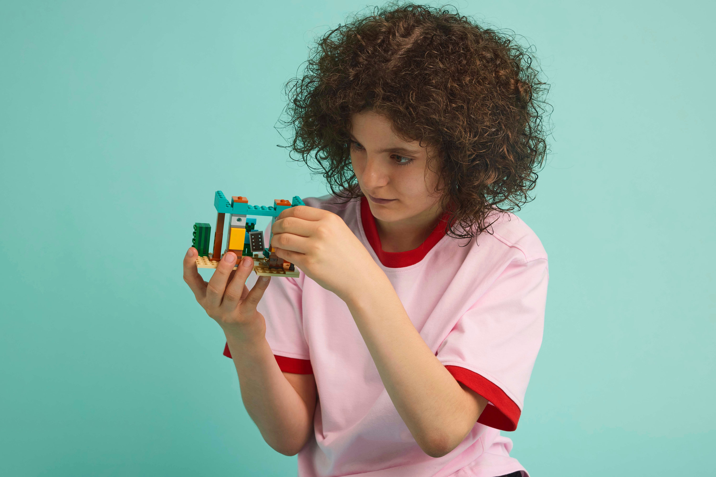 Ambientato in un avamposto nel deserto di Minecraft, i bambini interpretano il ruolo di un Cavaliere cactus, con la sua armatura di diamanti, scudo e spada. Quando 3 figure di abitori arrivano per rubare il tesoro, i bambini devono difendere l’avamposto. Il set include missili che i bambini possono lanciare con un semplice tocco del dito, una varietà di armi e un barile che contiene il tesoro. Per un divertimento ancora più digitale, l’app LEGO Builder consente ai bambini di ingrandire e ruotare i modelli in 3D utilizzando il proprio dispositivo.