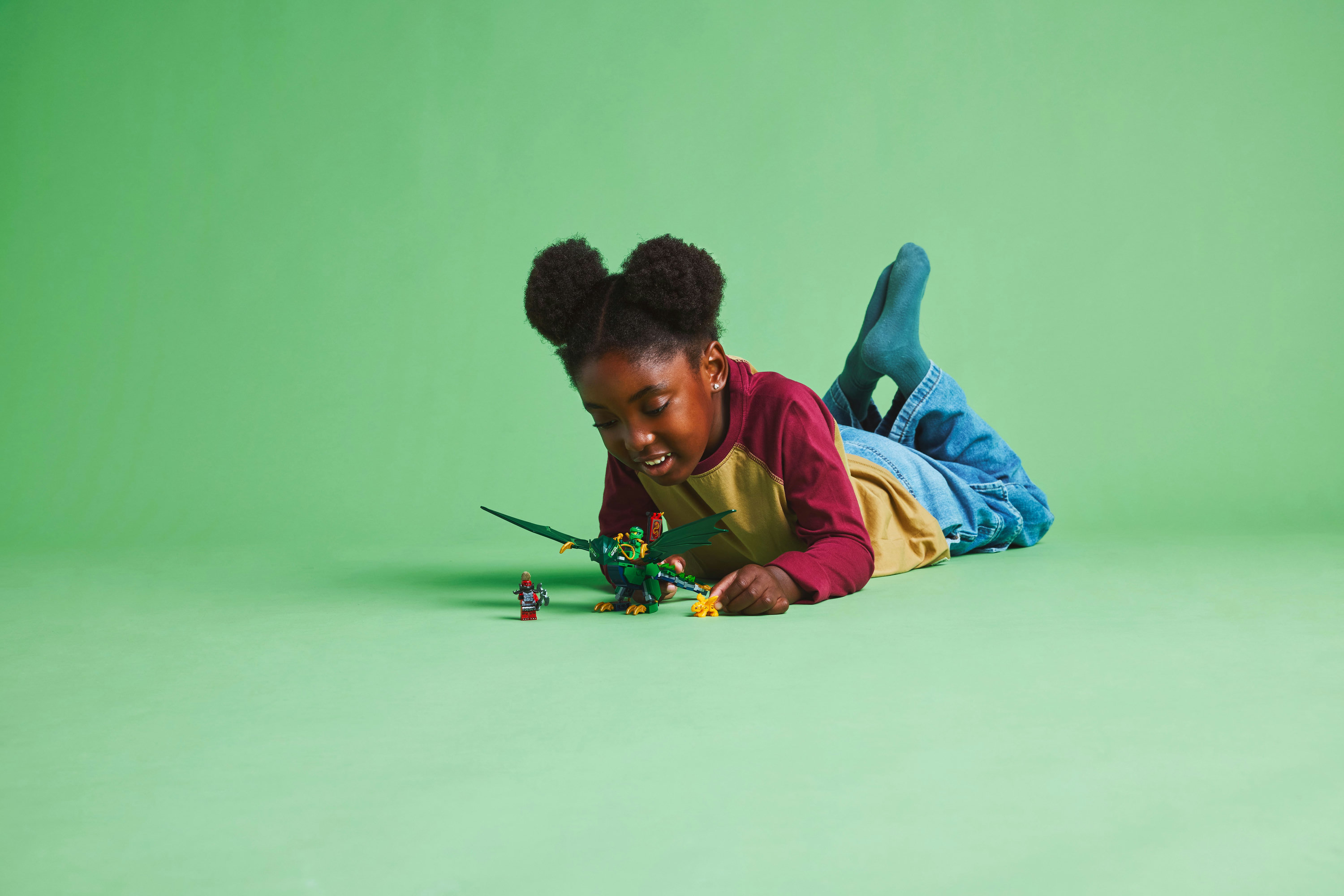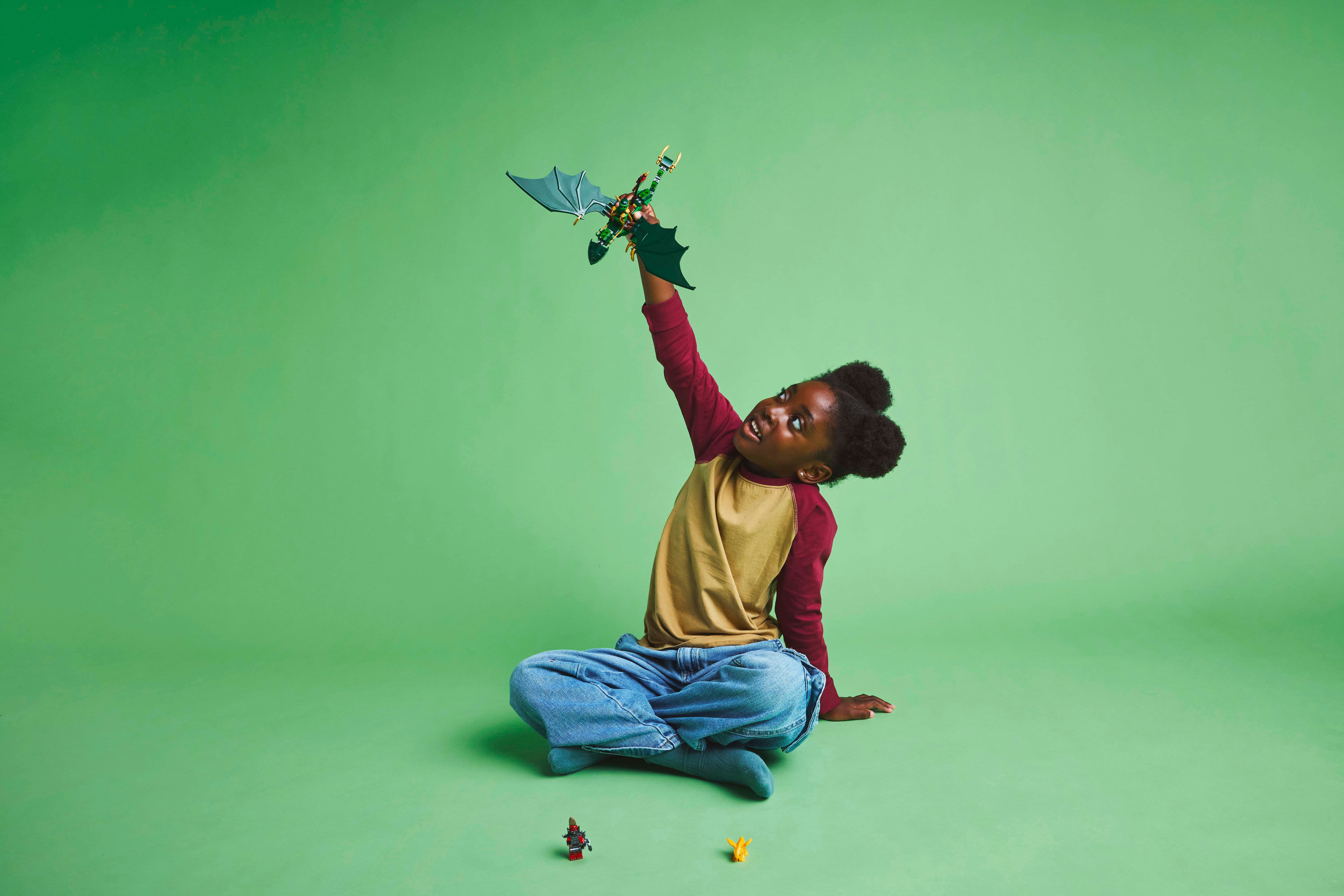 Drago NINJAGO® snodabile: un modello costruibile del Drago della foresta verde di Lloyd con coda, collo, gambe, mani e grandi ali snodabili, oltre a una sella che consente a una minifigure di cavalcarlo sul dorso