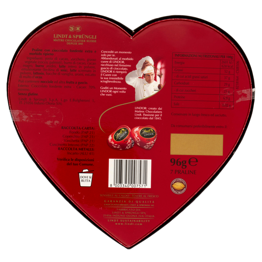 Fabbricato da: Lindt & Sprüngli S.p.A. 21056 Induno Olona (VA) Italia
