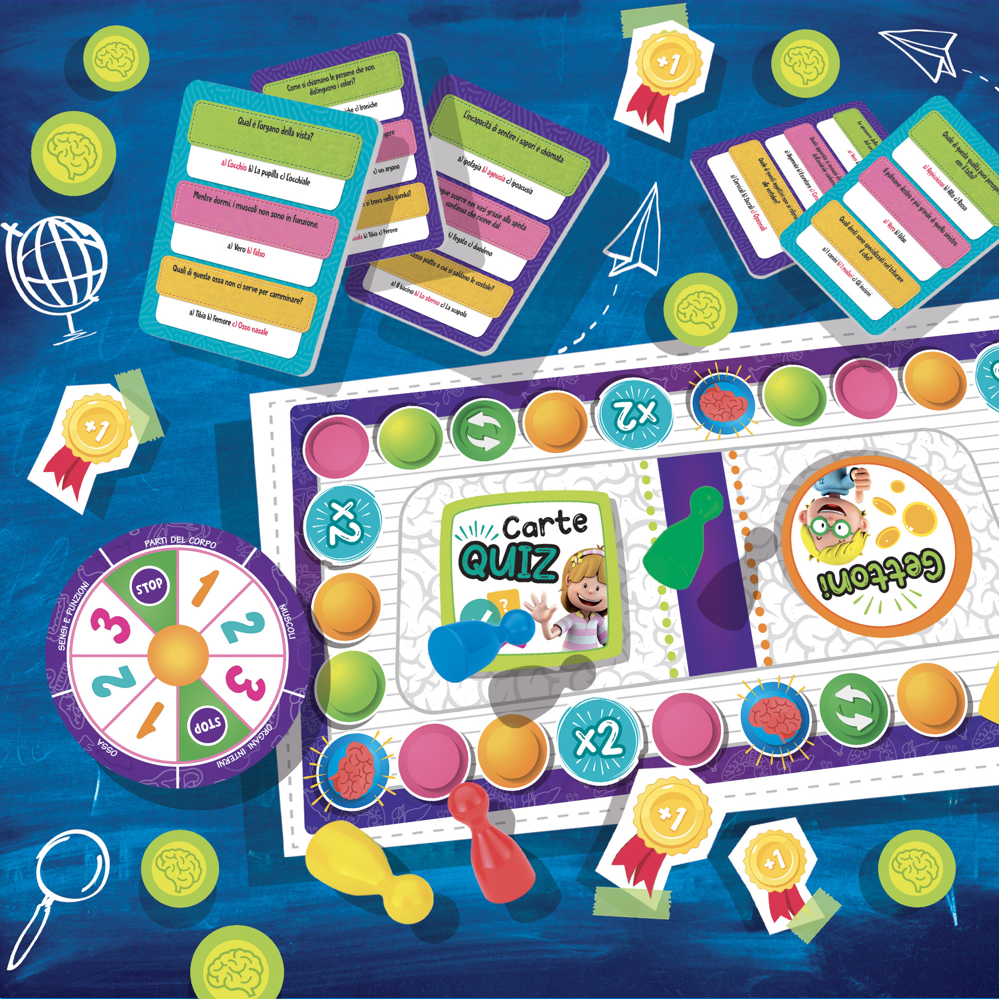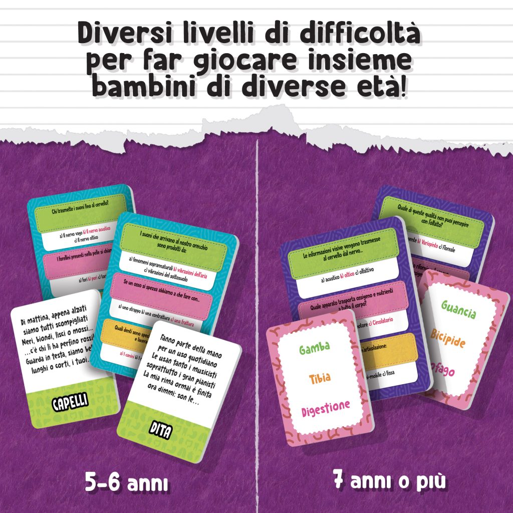 Un gioco di percorso a quiz, basato sui programmi della scuola primaria, per soprire e conoscere il corpo umano. Grazie ai tre livelli di difficoltà, possono giocare insieme bambini di età diversa. Rispondi alle divertenti domande, avanza sul tabellone e conquista le coccardine!