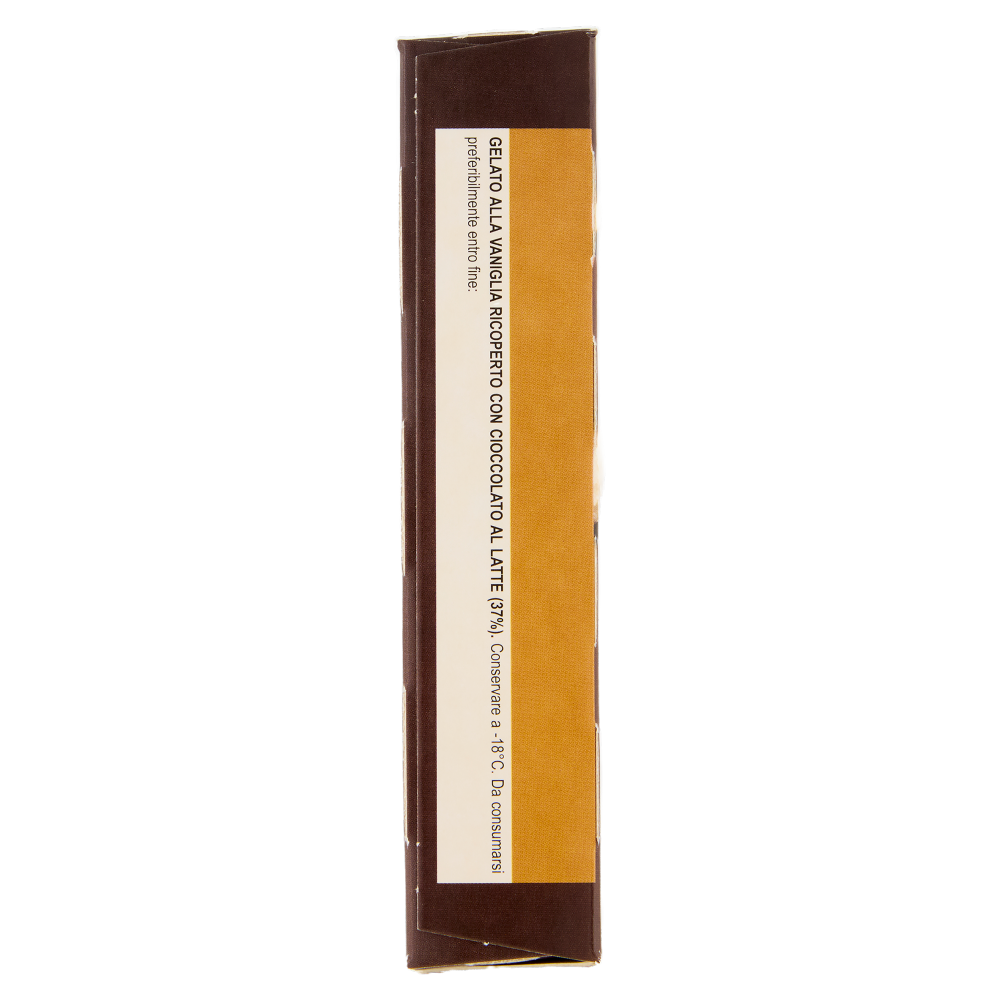 Gelato alla vaniglia ricoperto con cioccolato al latte (37%)