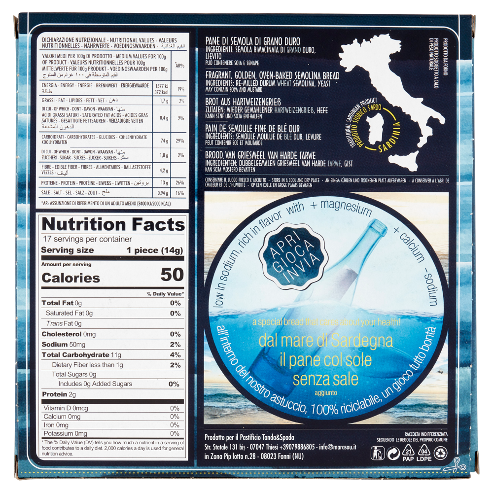 Luogo di provenienza Il primo e unico Carasau impastato con l'acqua di mare della Sardegna | 100% da grano sardo | Specialità dalla Sardegna | Prodotto storico sardo | Sardinia