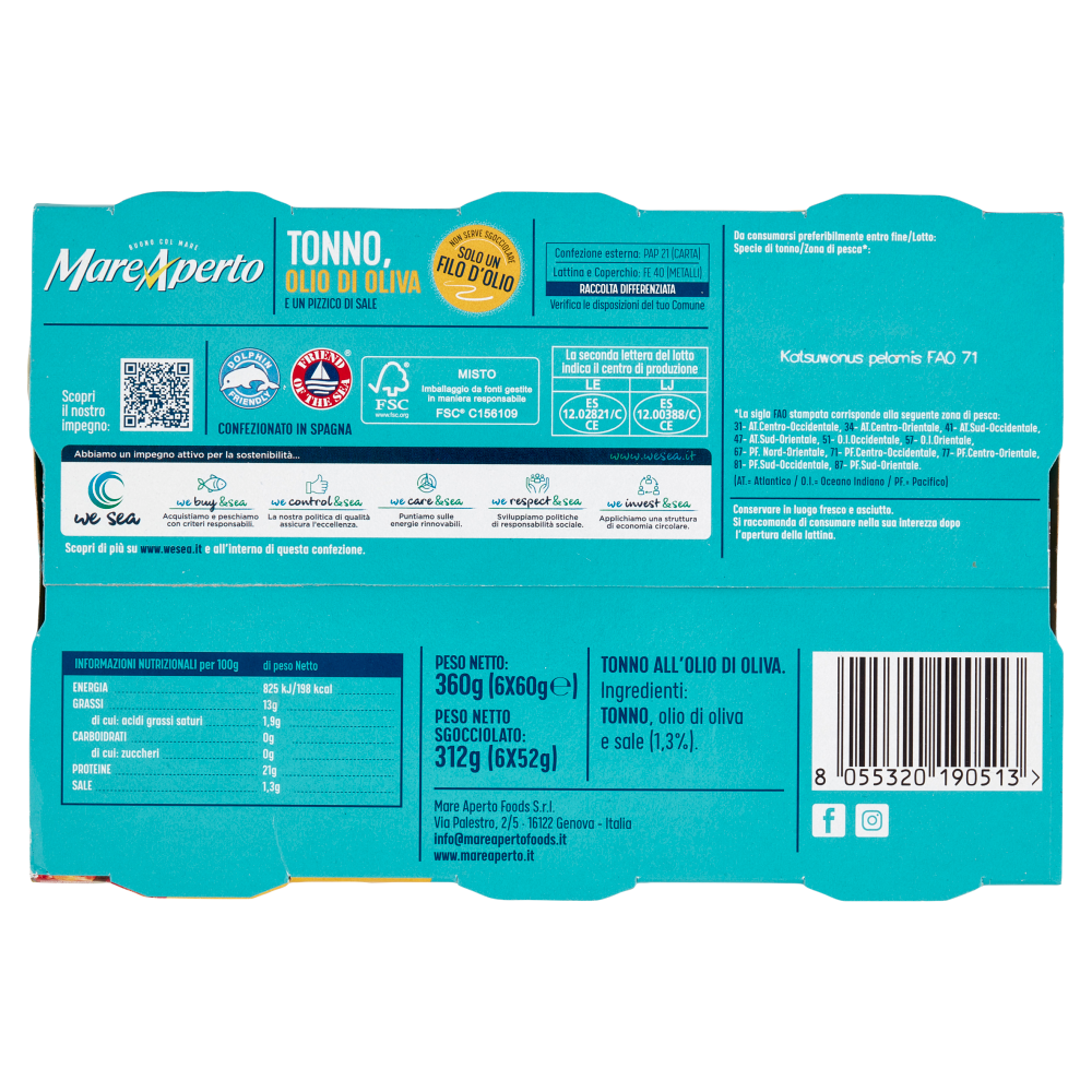 Mare Aperto Tonno con solo un filo d'olio 6 x 60 g