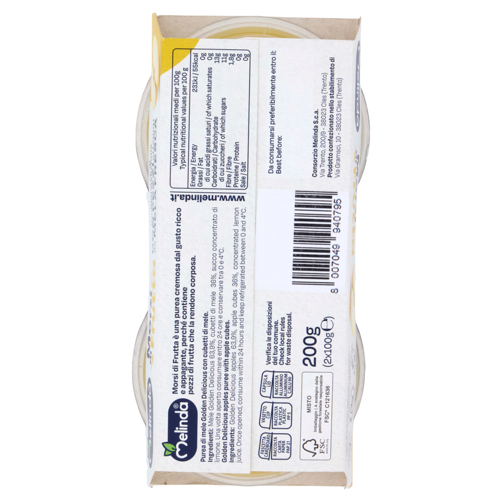 Melinda Morsi di Frutta Mousse di Golden Delicious con Pezzi ottenuti da Mela Fresca 2 x 100 g