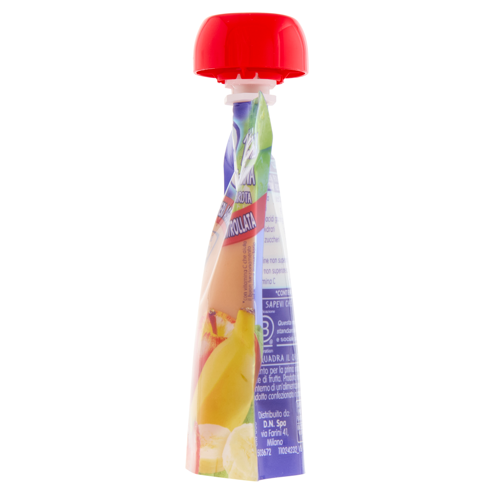 100% Mela fragola e banana con vitamina C e carota Senza zuccheri aggiunti* *Contiene naturalmente zuccheri