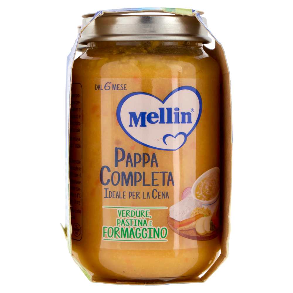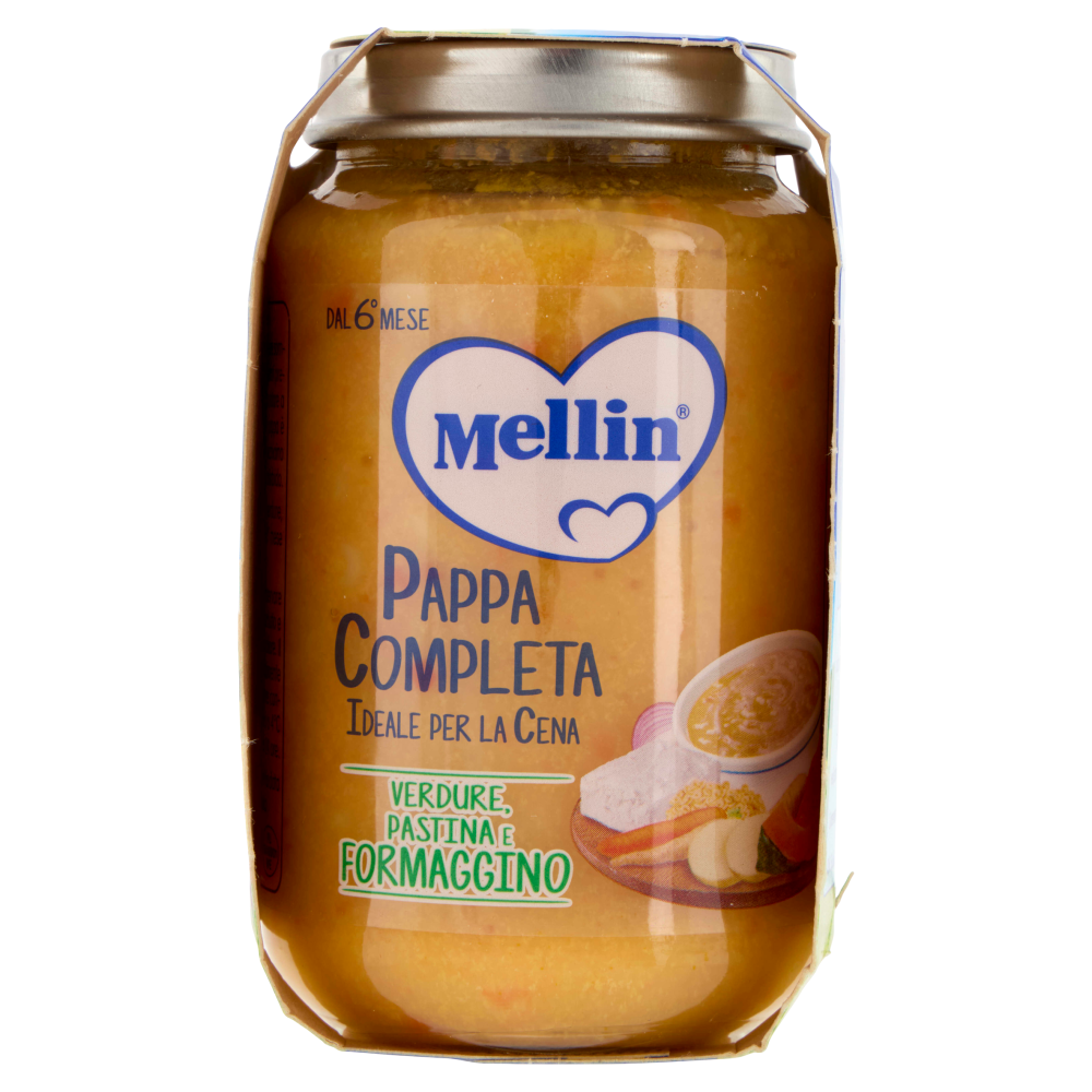 Modalità di utilizzo La Pappa Completa Mellin è pronta per essere somministrata al bambino, senza bisogno di ulteriori preparazioni. - È sufficiente togliere il tappo, scaldare a bagnomaria o nel forno a microonde e la pappa è pronta. - È possibile aggiungere a crudo un cucchiaino di olio extravergine d'oliva per un gusto più morbido.
