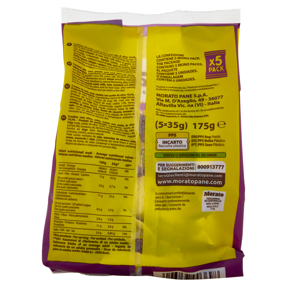 Crostino con mais, mais viola e con olio di oliva 10,5%, prodotto da forno