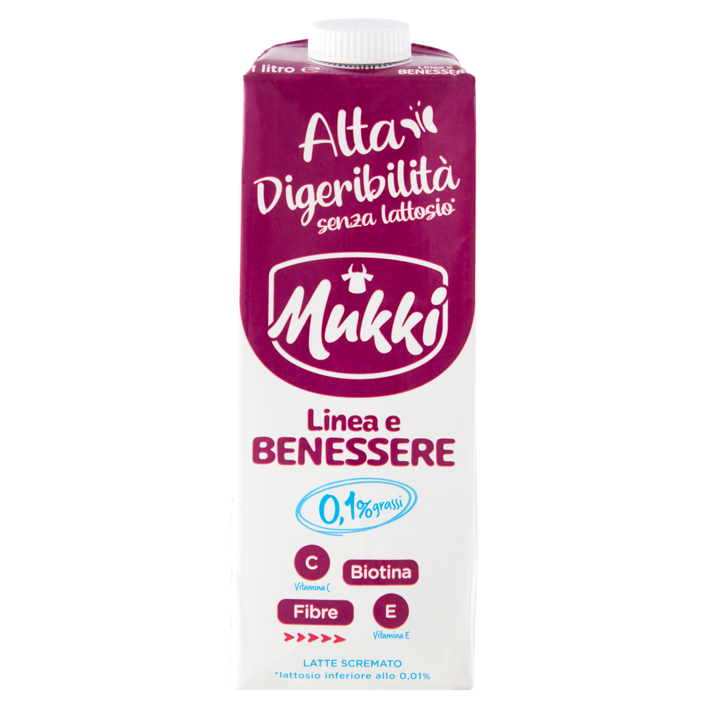 Mukki Alta Digeribilità senza lattosio* Linea e Benessere 0,1% grassi 1 litro
