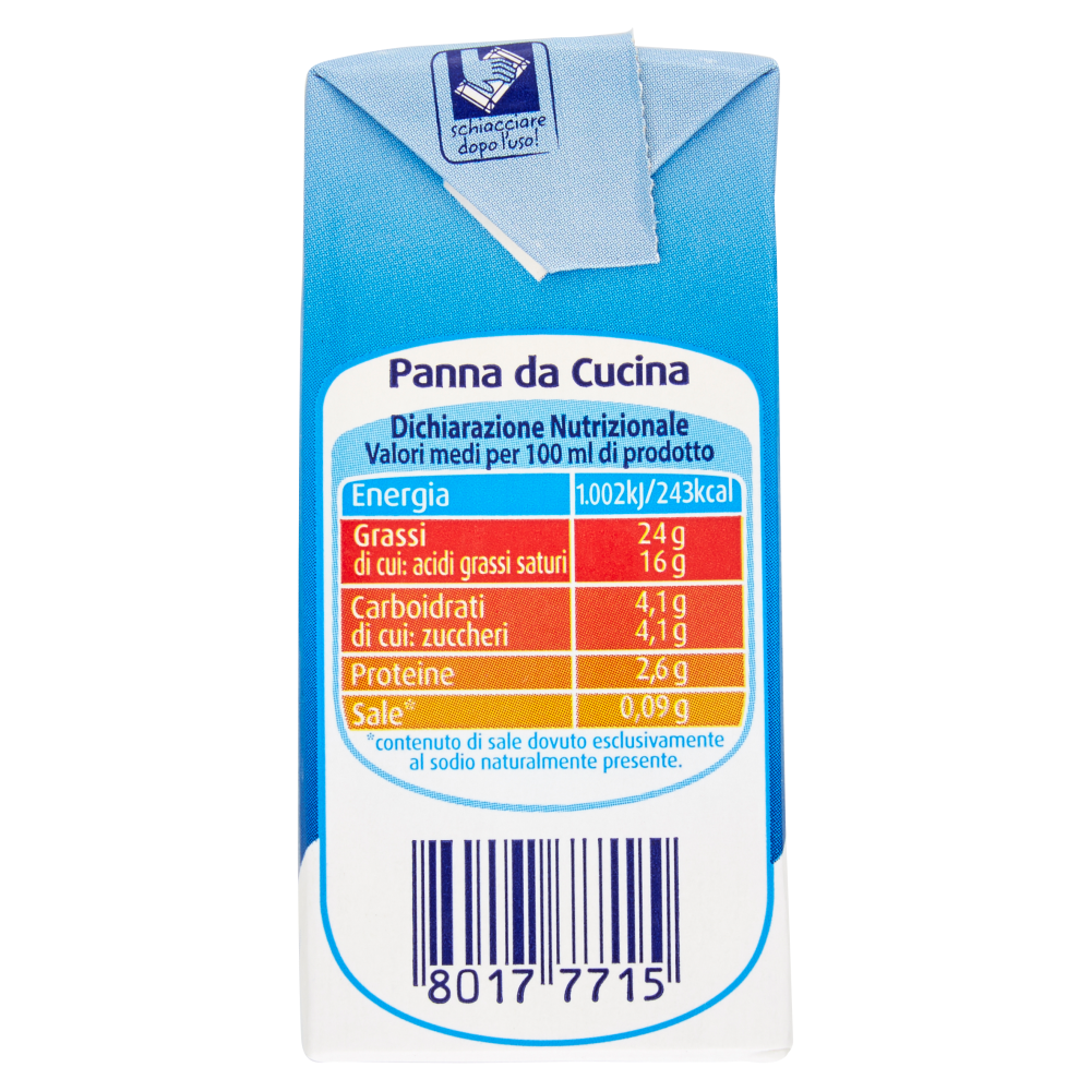 AmbienteConservare in luogo fresco e asciutto. Dopo l'apertura, tenere in frigorifero e consumare entro 3 - 4 giorni.