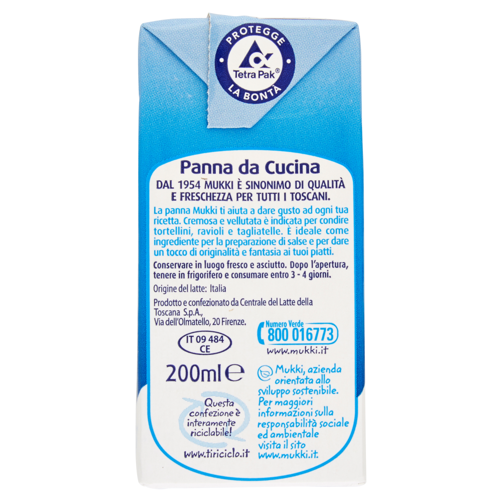 Prodotto e confezionato da Centrale del Latte della Toscana S.p.A. Via dell'Olmatello, 20 Firenze