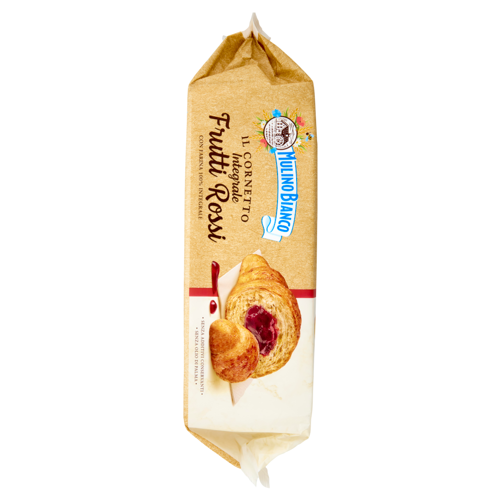 Mulino Bianco Cornetti Integrali Frutti Rossi Merenda con 100% Farina Integrale 6 pezzi 300g