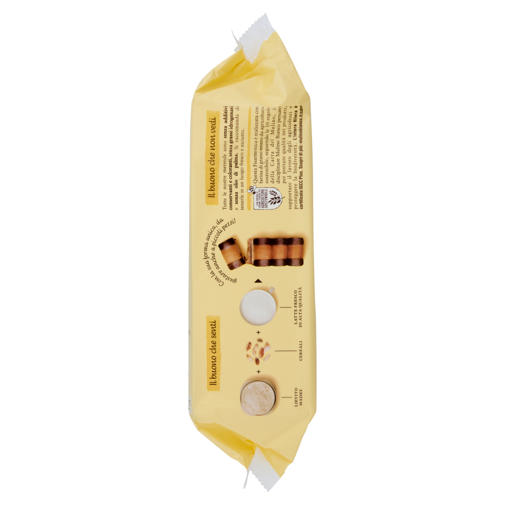 Il buono che senti Lievito madre + Cereali + Latte fresco di Alta Qualità Con la sua forma unica, da gustare anche a piccoli pezzi! Il buono che non vedi Tutte le nostre merende sono senza additivi conservanti e coloranti, senza grassi idrogenati e senza olio di palma. Si raccomanda di tenerle in un luogo fresco e asciutto. Con farina di grano tenero da agricoltura sostenibile Questa Fisarmonica è realizzata con farina di grano tenero da agricoltura sostenibile, seguendo le 10 regole della Carta del Mulino, il disciplinare Mulino Bianco pensato per portare qualità nei prodotti, supportare il lavoro degli agricoltori e proteggere la biodiversità. L'intera filiera è certificata ISCC Plus. Scopri di più: mulinobianco.it/cdm