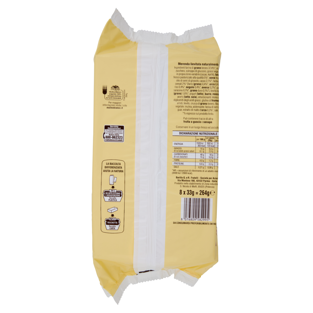 Mulino Bianco Fisarmoniche Merenda con 8 Cereali e Crema al Malto d'Orzo e Cacao 8 pezzi 264g