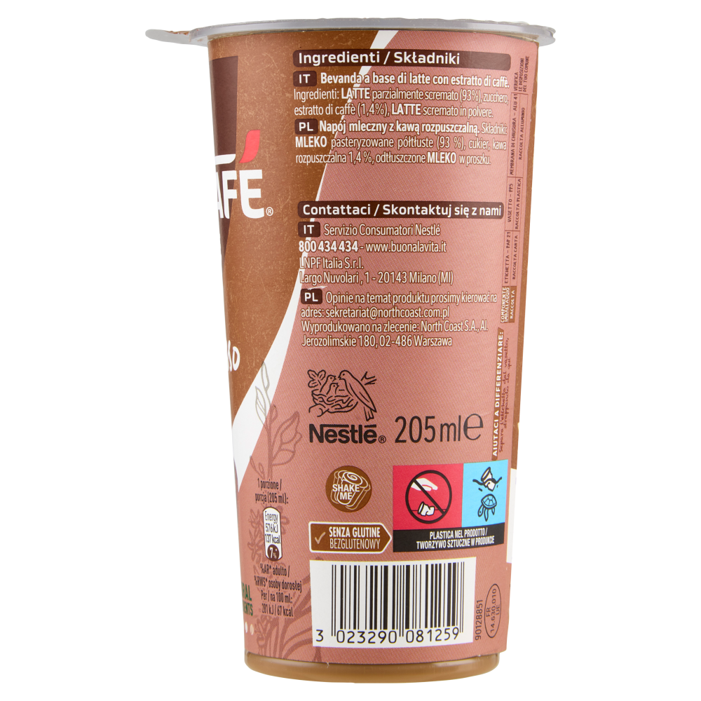 Senza glutineBevanda a base di latte con estratto di caffè