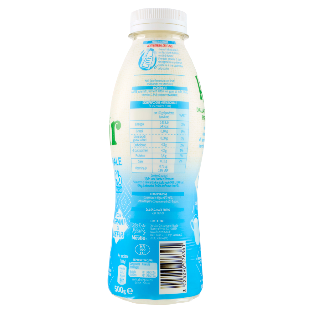 Consigli per il consumo Agitare prima dell'uso! Consuma il Kefir nell'ambito di una dieta varia ed equilibrata e uno stile di vita sano. L'eventuale presenza di siero non rappresenta un problema di qualità ma è una caratteristica del prodotto.