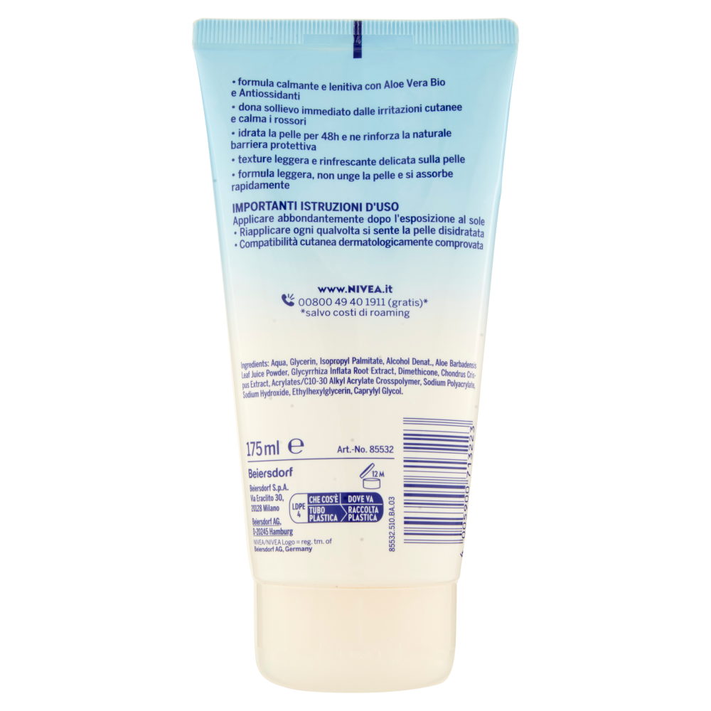 Importanti istruzioni d'uso Applicare abbondantemente dopo l'esposizione al sole - Riapplicare ogni qualvolta si sente la pelle disidratata - Compatibilità cutanea dermatologicamente comprovata