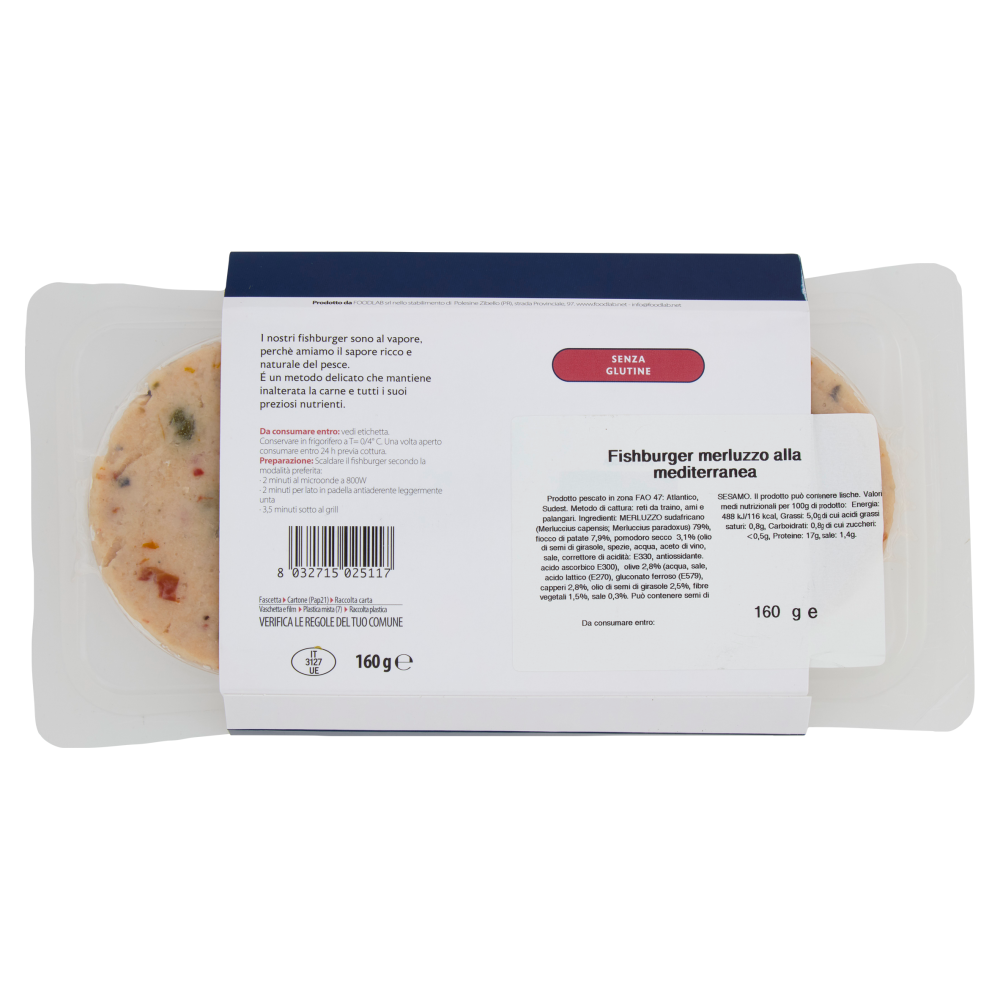 Senza glutineFishburger merluzzo alla mediterranea