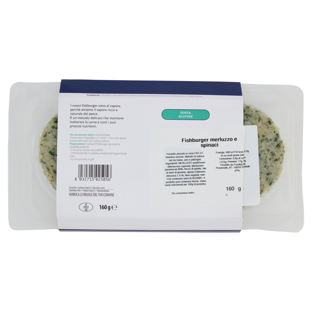 North Bay FishBurger al Vapore Merluzzo con Spinaci 160 g