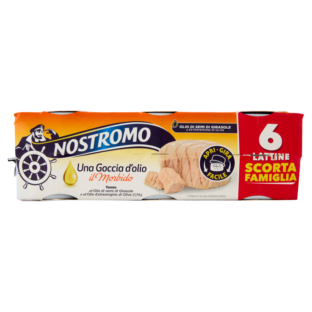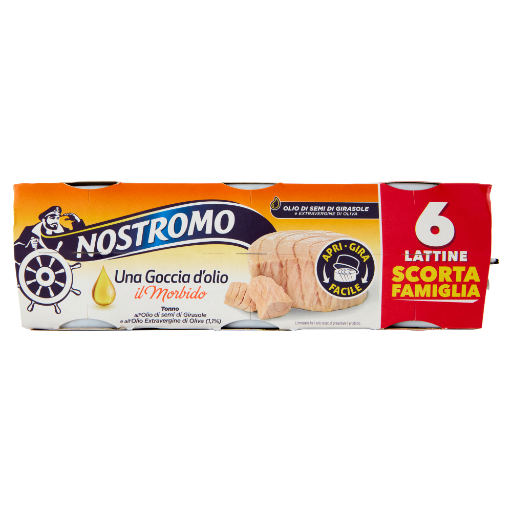 Nostromo Una Goccia d'olio il Morbido Tonno all'Olio di Semi di Girasole e Extravergine 6 x 65 g