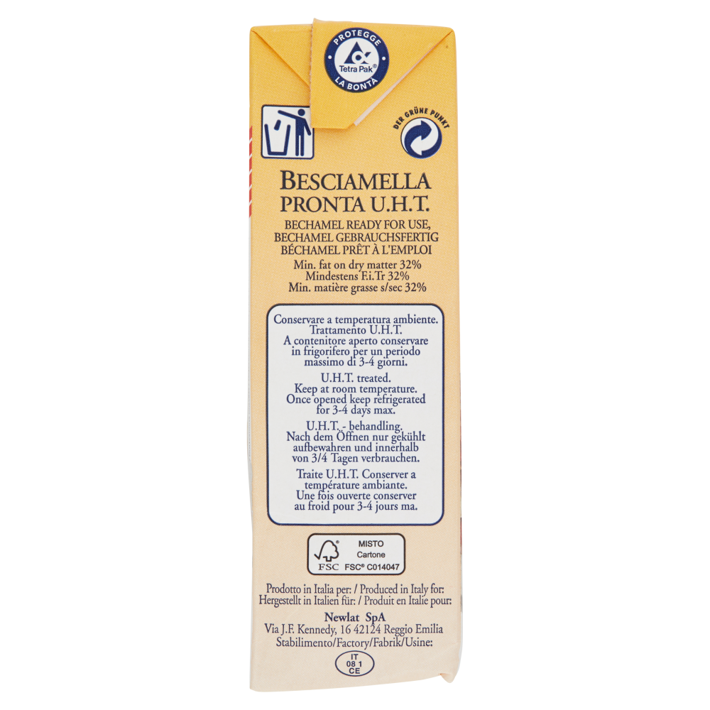 Prodotto in Italia per: Newlat SpA Via J.F. Kennedy, 16 42124 Reggio Emilia Stabilimento: Bollo CEE IT 08 1 CE