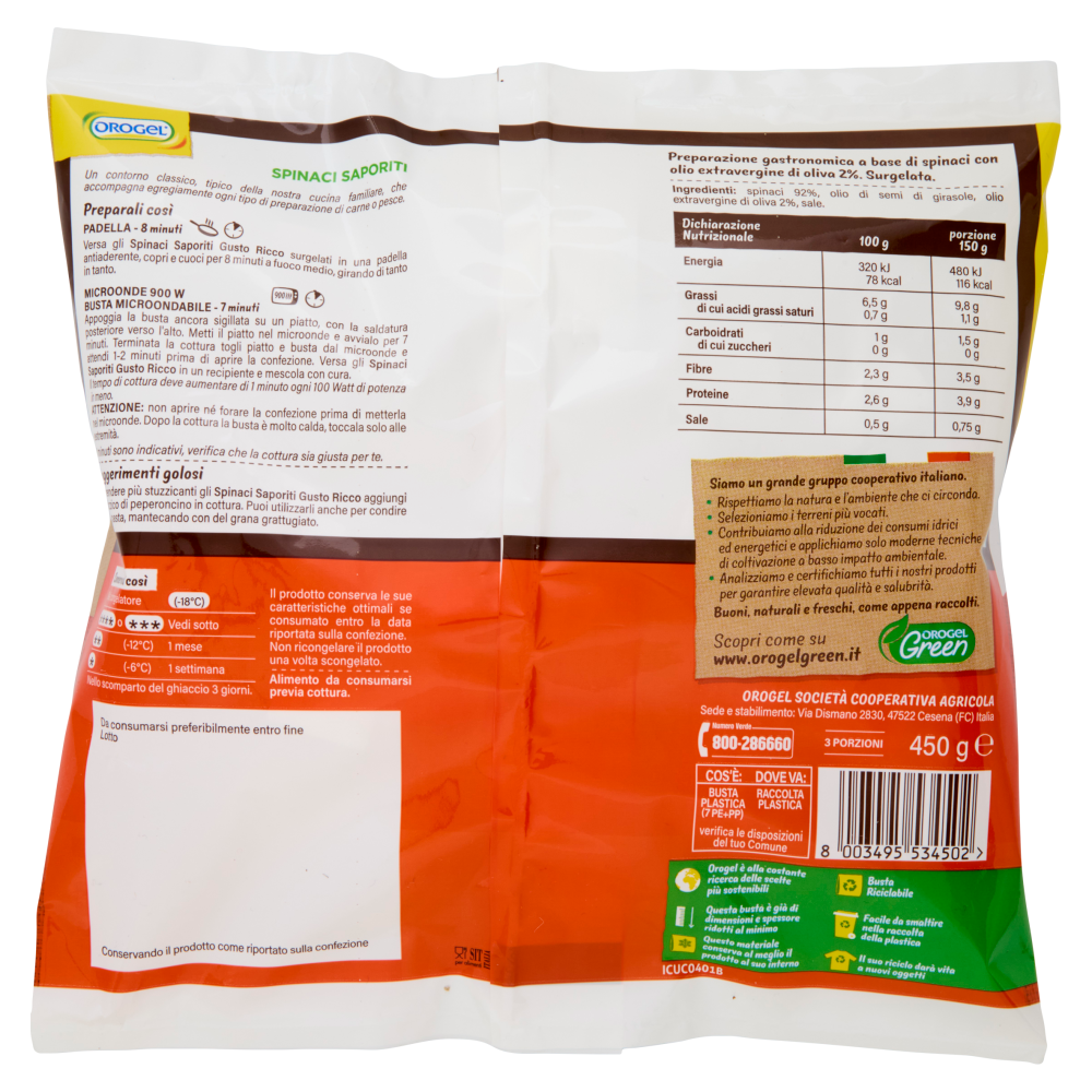 Orogel Gusto Ricco Spinaci Saporiti Surgelati 450 g